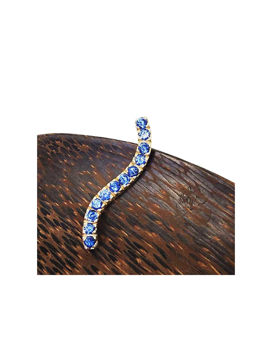 Hanger in de vorm van een sierlijke golvende lijn, ingelegd met blauwe kristallen en doorboord met kleine hartjes aan de zijkanten. Ideaal voor een Valentijnscadeau, bruiloft of speciale gebeurtenis.