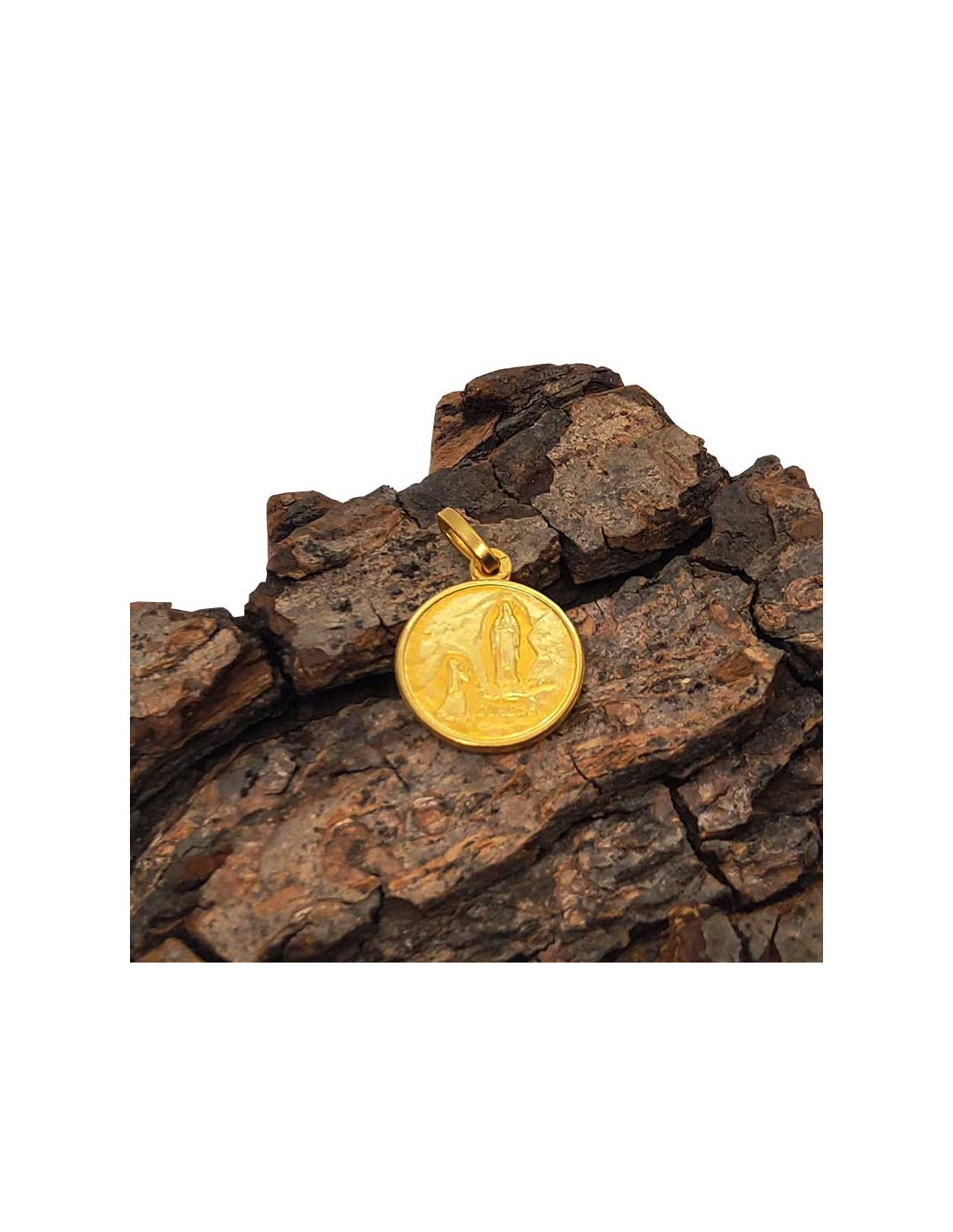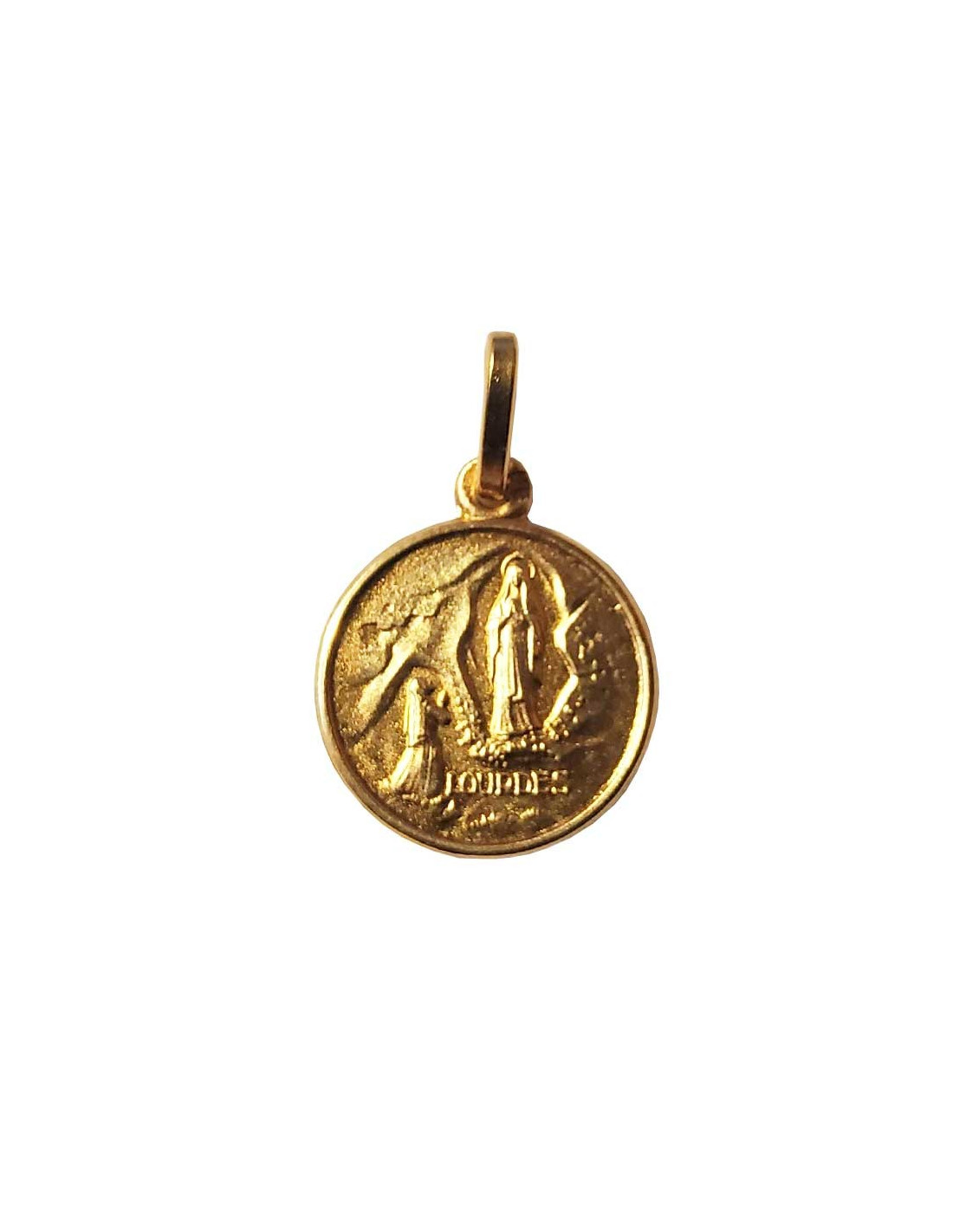 Medaille van de verschijning van Onze Lieve Vrouw van Lourdes in vergulde uitvoering. Deze hanger is een prachtig sieraad, een religieuze medaille die onder alle omstandigheden gedragen kan worden. Ze is als een troostende aanwezigheid van de Maagd, zoals ze dat was voor Bernadette Soubirous.