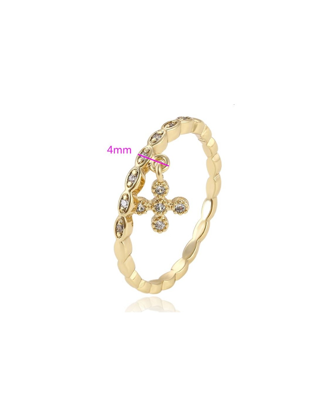 18 k vergulde ring van milieukoper ingelegd met strass-steentjes en versierd met een klein kruisje bezet met eveneens kristallen.