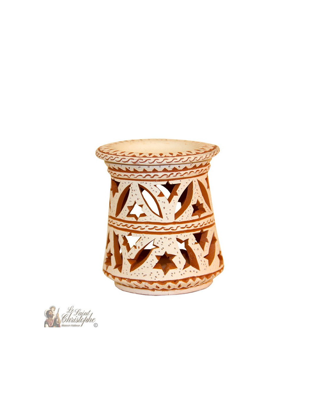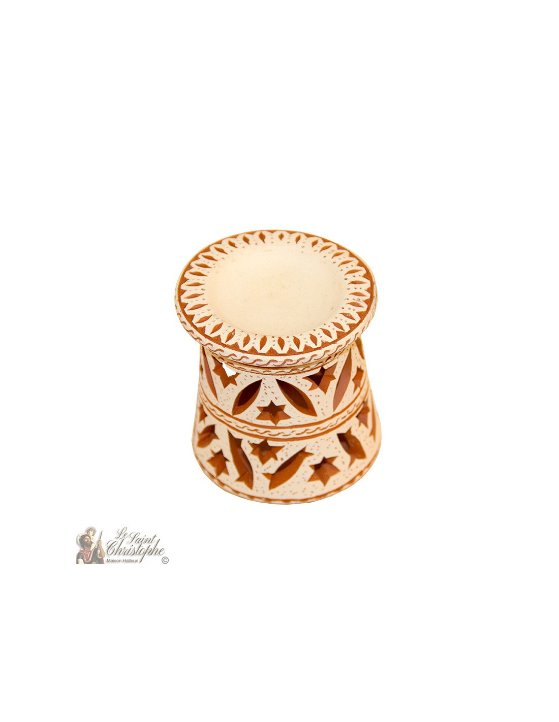 Deze terracotta brander is geheel met de hand gemaakt door een ambachtsman. Delicate sculptuur, het wordt ook gebruikt als een kaarsenhouder voor een zachte gezeefde sfeer door het plaatsen van een kleine kaars aan de achterkant van het object.