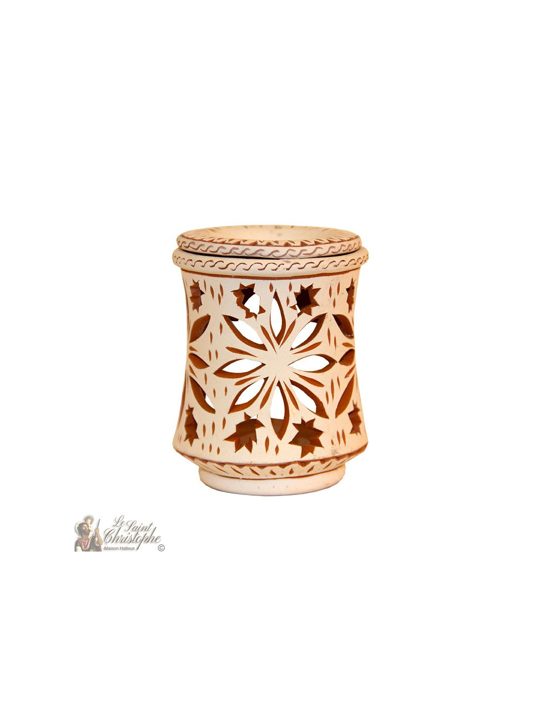 Terracotta kaarsenhouder oliebrander - bloemen en hulst