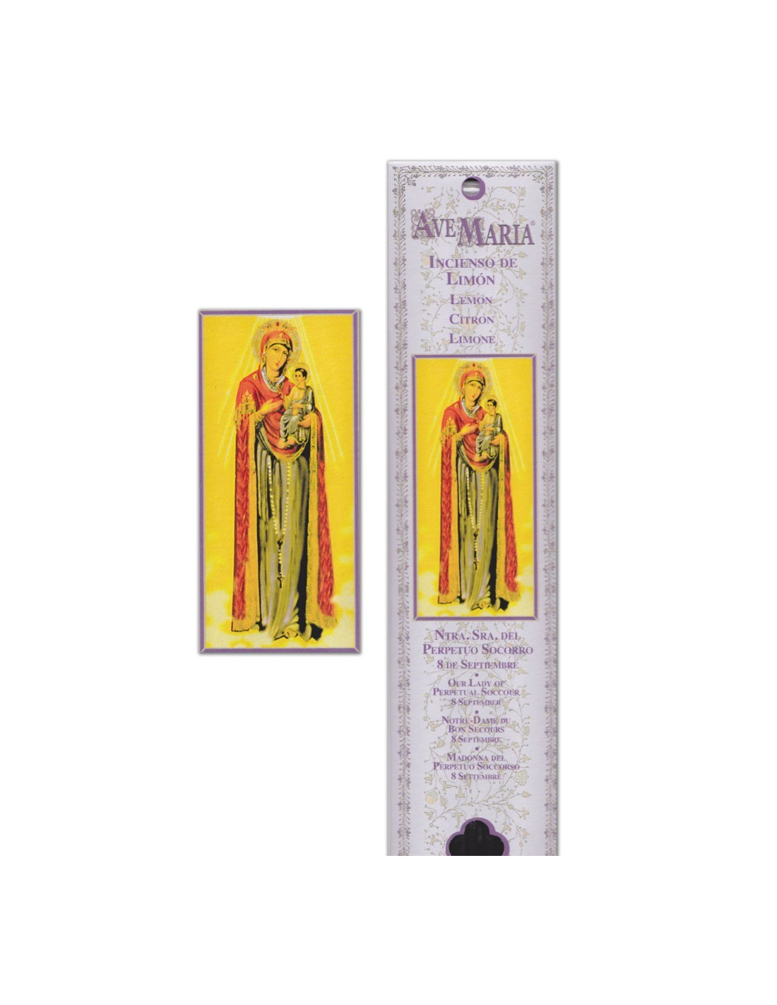 Dit zakje, met de beeltenis van Onze Lieve Vrouw van Altijddurende Bijstand die het kindje Jezus in haar armen houdt, bevat 15 stokjes natuurlijke wierook met een pittige citroengeur. Het wordt voornamelijk gebeden op 8 september. De combinatie van Onze Lieve Vrouw van Altijddurende Bijstand en citroen geeft deze wierook een zuiverende en stimulerende werking.