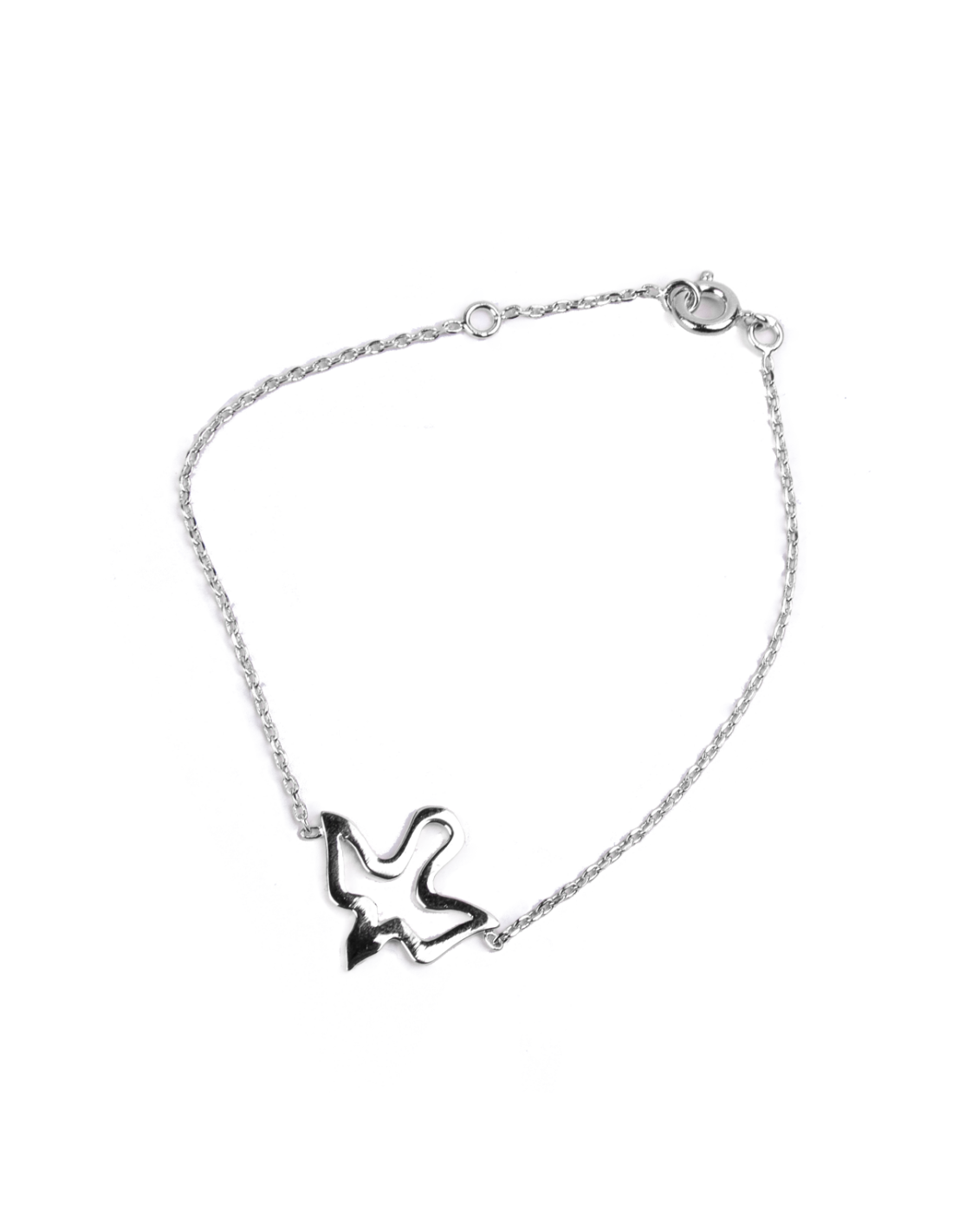 Deze fijne en chique armband is een delicaat accessoire dat elke dag kan worden gedragen. De hanger is een duif, getraceerd door zijn silhouet, symbool van Vrede en Liefde. De armband is verstelbaar dankzij de twee mogelijke bevestigingspunten.