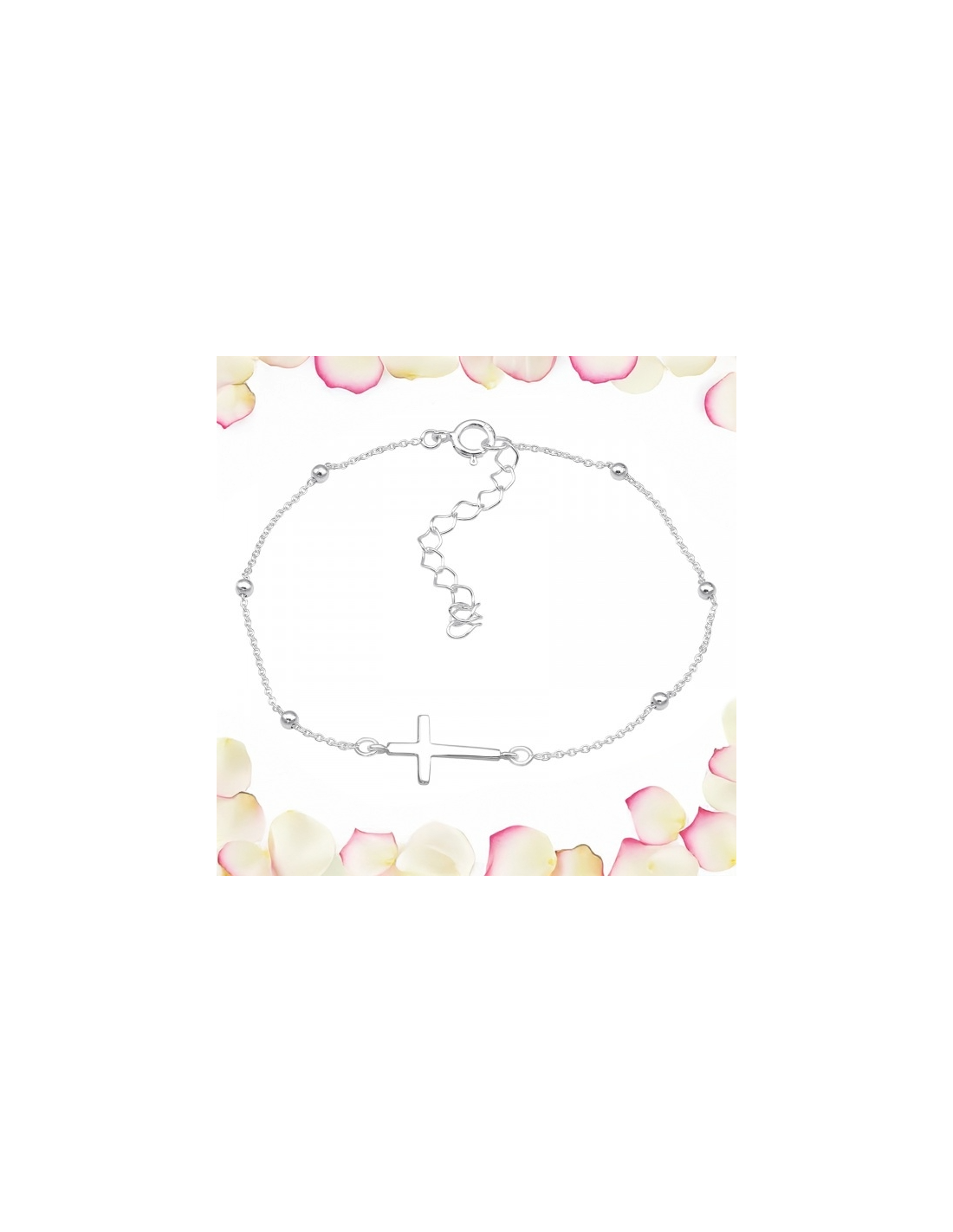 Voeg een vleugje elegantie en spiritualiteit toe met deze Kruisarmband van 925 Sterling Zilver, subtiel verzilverd met E-Coat afwerking voor langdurige glans.