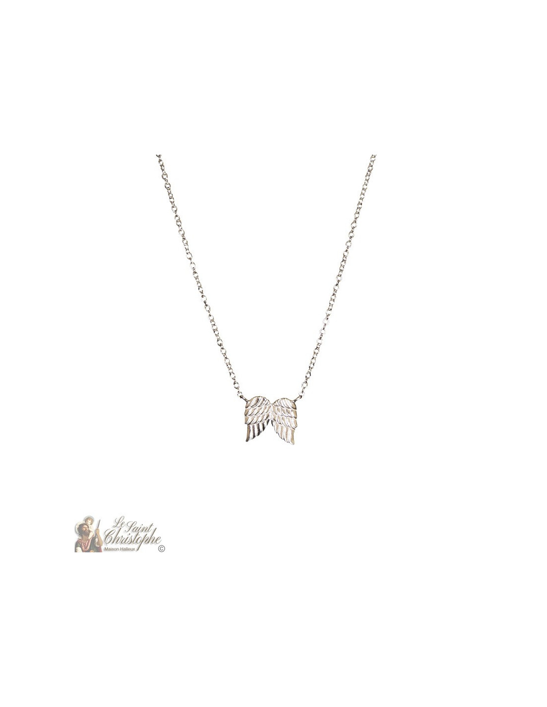 Fijnmazige ketting, met 925 verzilverde afwerking en E-coat, met een delicaat paar engelenvleugels als hanger.