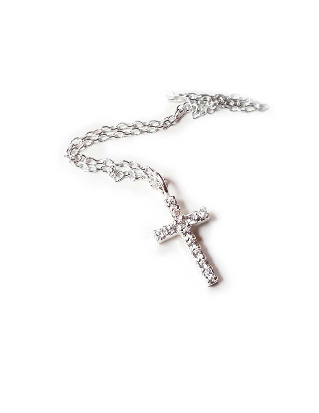 Ketting en hanger in zilver 925. De hanger is een kruis ingelegd met twaalf natuurlijke kristallen. Het geheel is verzilverd, een trendy en chique sieraad dat zeer goed past bij alle outfits.