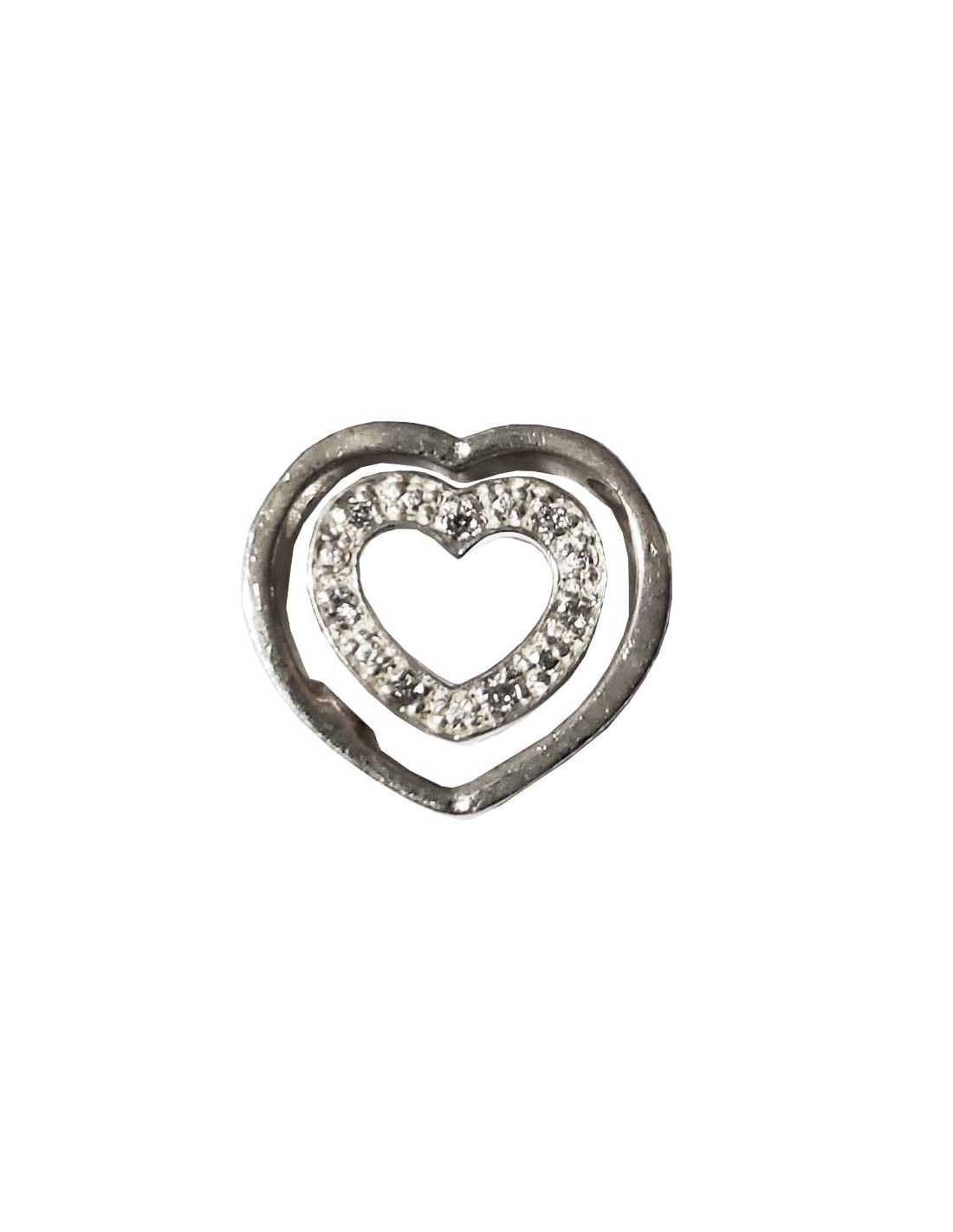Dubbele in elkaar grijpende harten hanger met witte kristallen in 925 sterling zilver